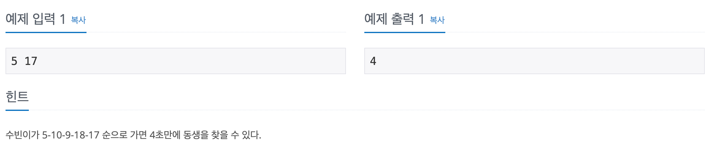 문제에서 주어진 예시를 보면 수빈이의 위치는 5이고 동생의 위치는 17이다.