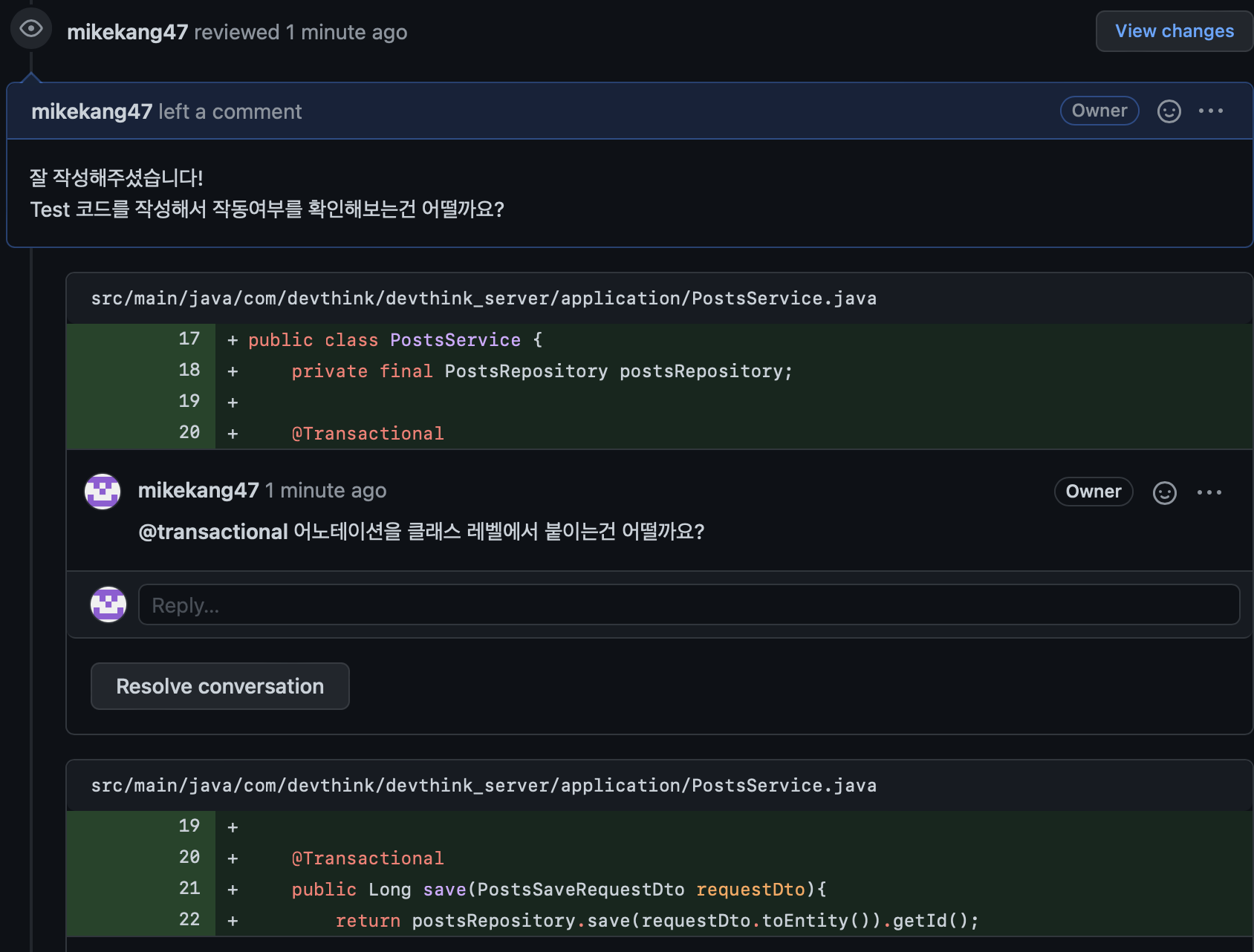 이제는 내가 코드 리뷰를 하고 있다...!