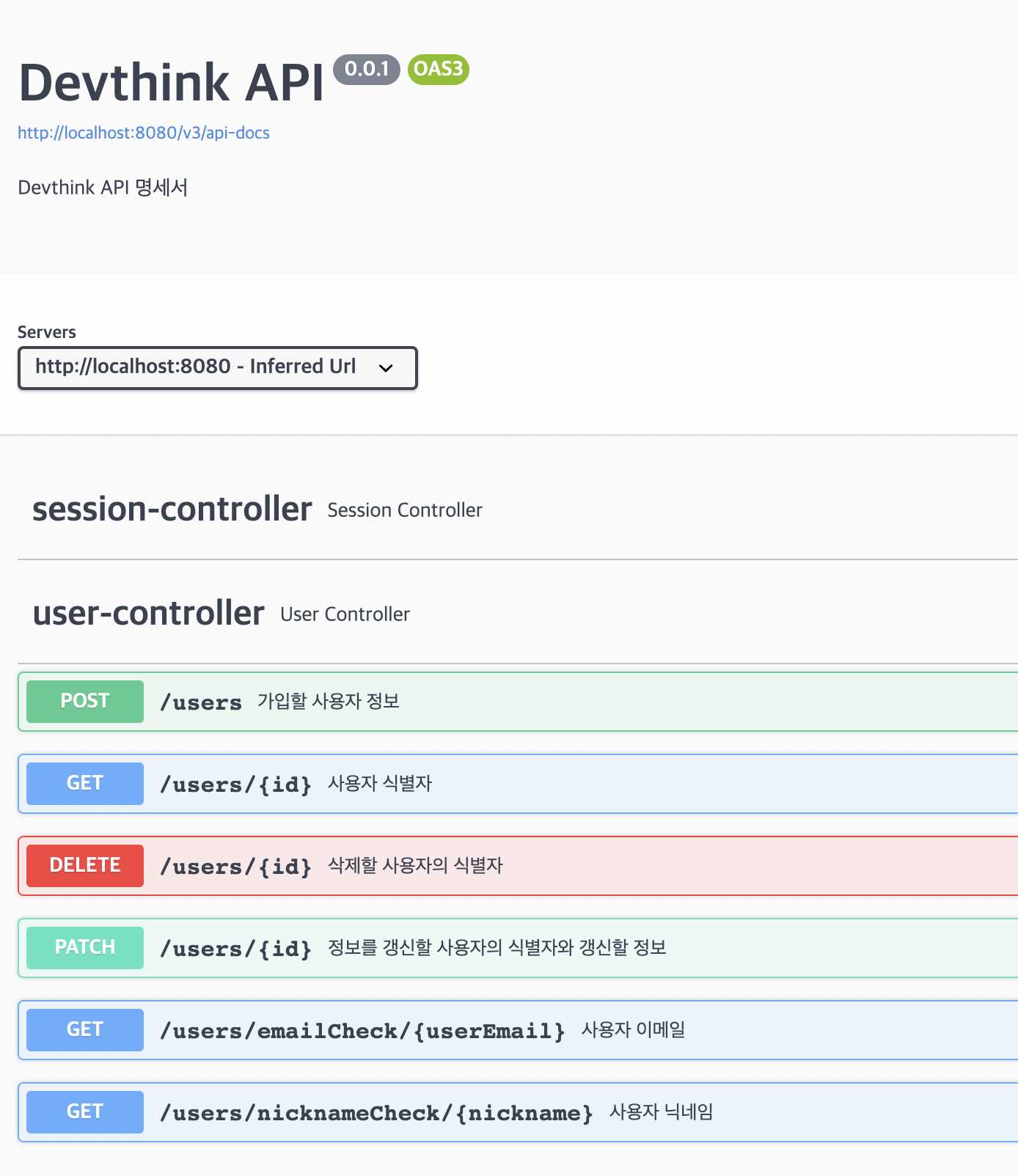 여기까지 설정하고 기본 주소인 http://localhost:8080/swagger-ui/index.html 로 접속하면 기본 화면이 출력되면서