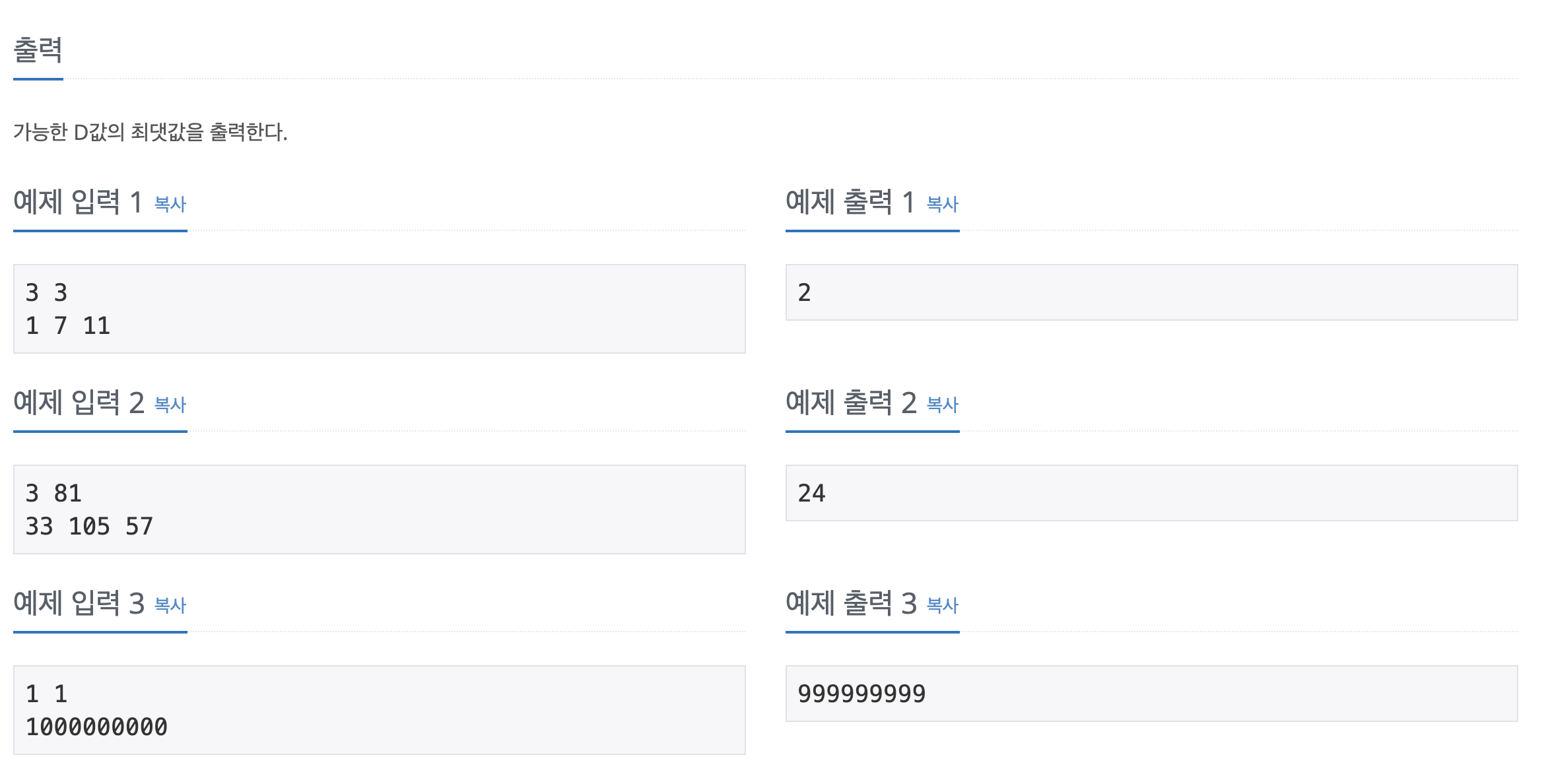 X-D와 X+D의 위치로 이동할 수 있고, D를 구하는 문제이다.
