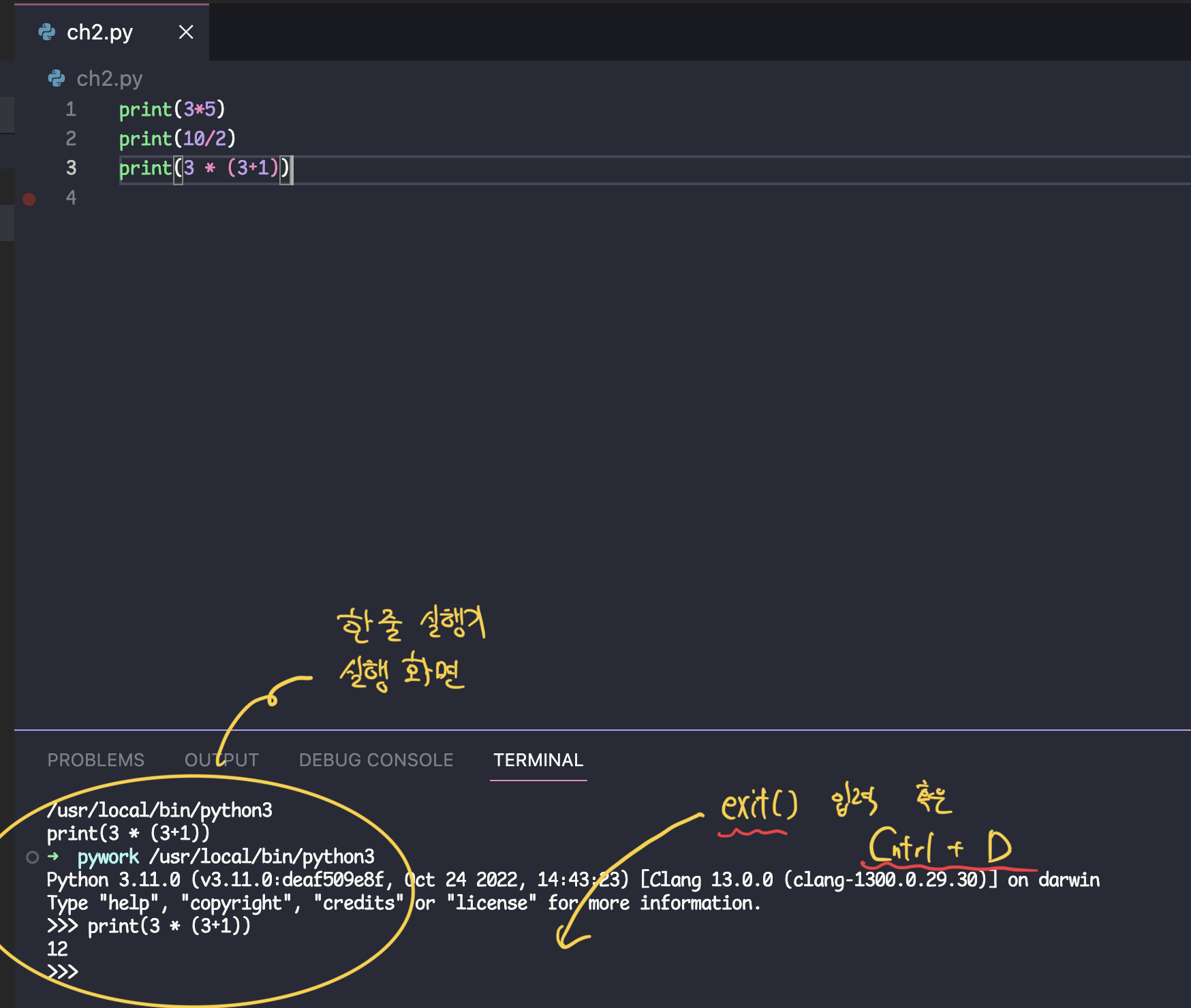 이때는 책처럼 'exit()'을 입력하거나 혹은 cntrl + D를 눌러 탈출이 가능하답니다!
