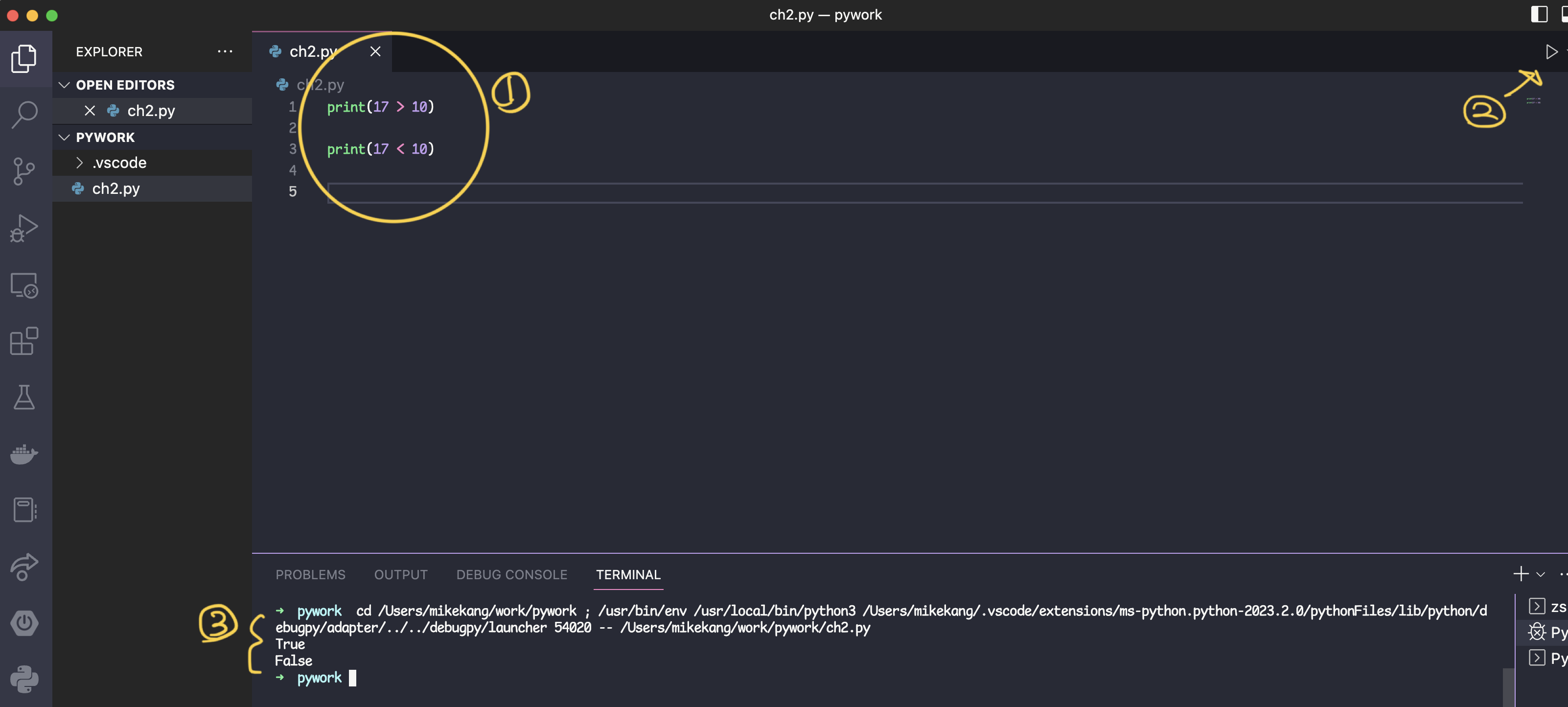 - 먼저 책의 내용을 그대로 따라 ch2.py 파일을 만들어주세요!