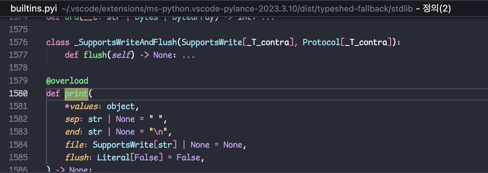 print를 위와 같이 클릭하게 되면 함수의 정의가 나오게 됩니다.