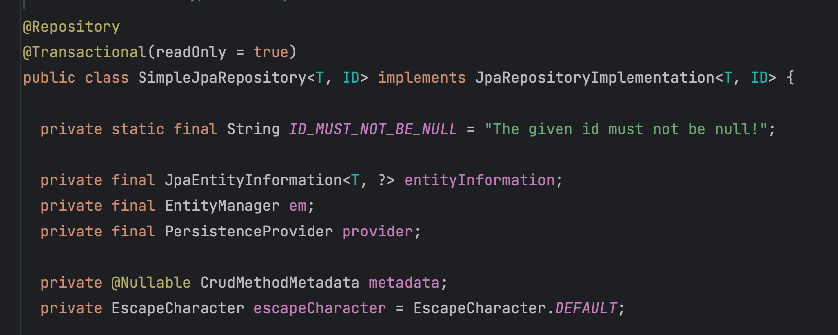 여기에 JpaRepo의 상위 인터페이스에 대한 추상메서드의 구현체가 담겨 있습니다.