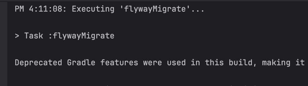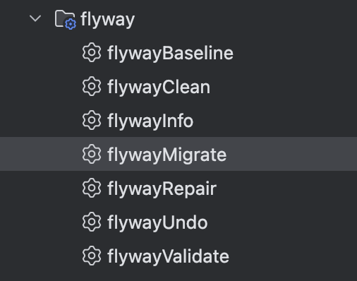 flyway 관련 명령어가 생성된 것을 확인할 수 있습니다.