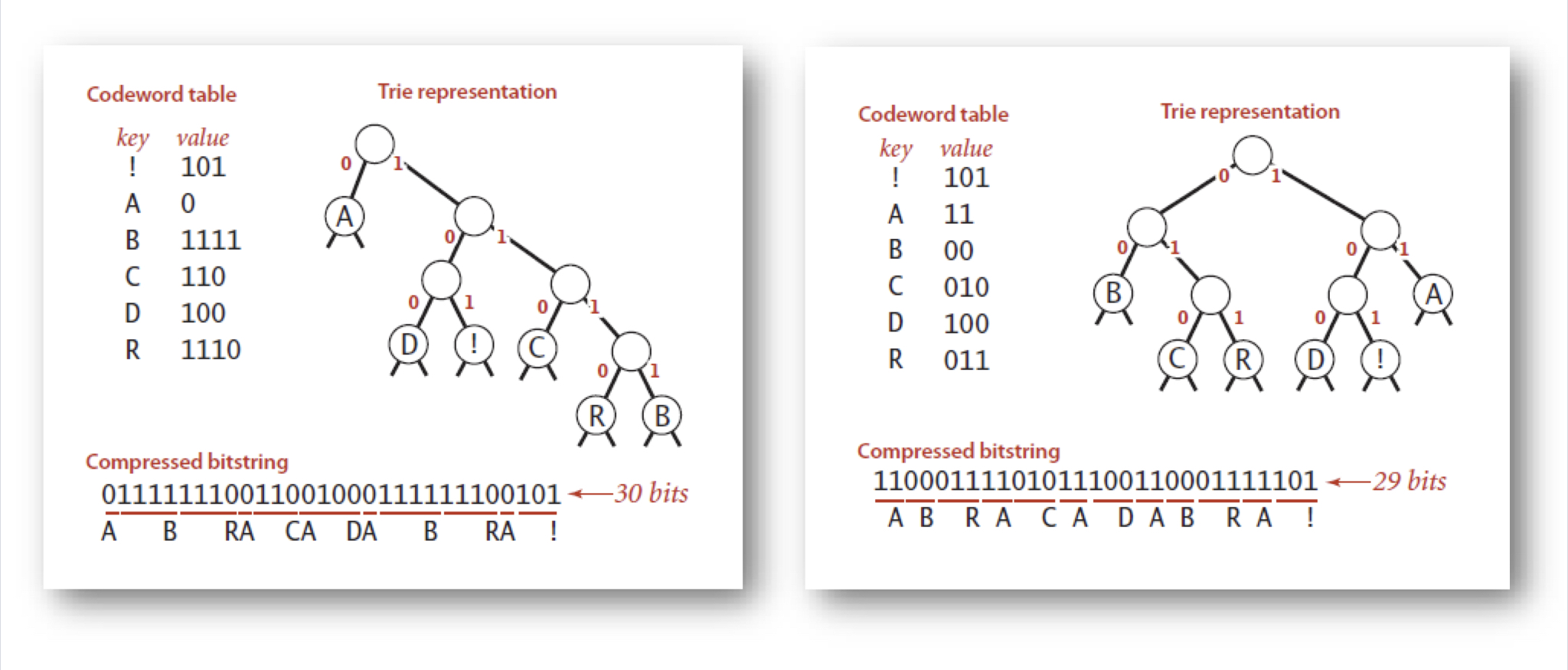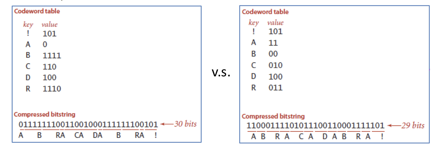 같은 문자열을 표기하는데 한 코드는 30bit를 필요로하고, 다른 코드는 29비트를 필요로 한다.